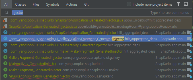 Inject 하고 있는 GeneratedInjecter들은 build-source-kapt-debug 경로에 인터페이스가 생성되어 있는 것을 볼 수 있다.