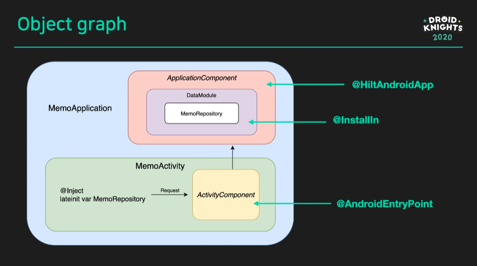 Dagger에 대한 지식이 없어서 그런지, Hilt 내부 구조에 대해 잘 몰라서 그런지... 혼자서 뒤적거려봐도 실마리를 잡을 수 없었다. 그래서 자료들을 찾아보는 도중 2020 드로이드나이츠 발표 영상을 보게 되었다.